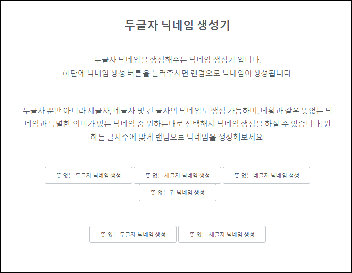 | 두글자 닉네임 생성기를 이용한 레어 닉네임 생성하기 (712) | 2023.10.15 |