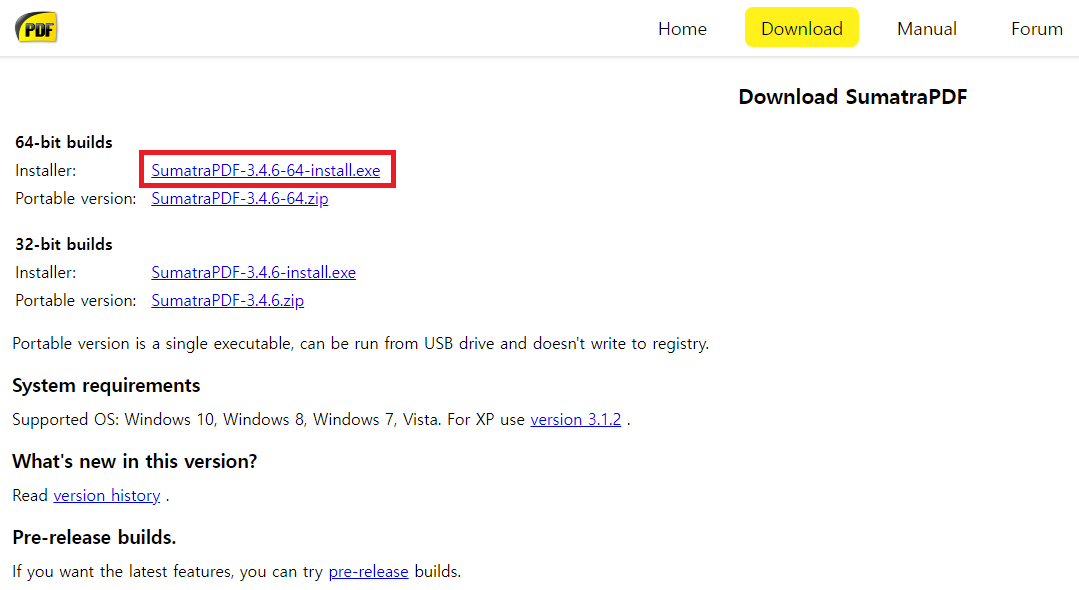 설치파일 크기는 1MB 정도 되며 자신의 컴퓨터 bit에 맞게 설치파일을 받아 주시길 바랍니다.